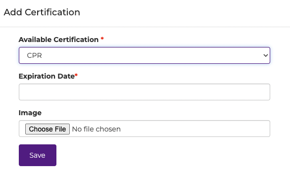 - Available Certification dropdown of certifications that have been entered into OfficerHR.